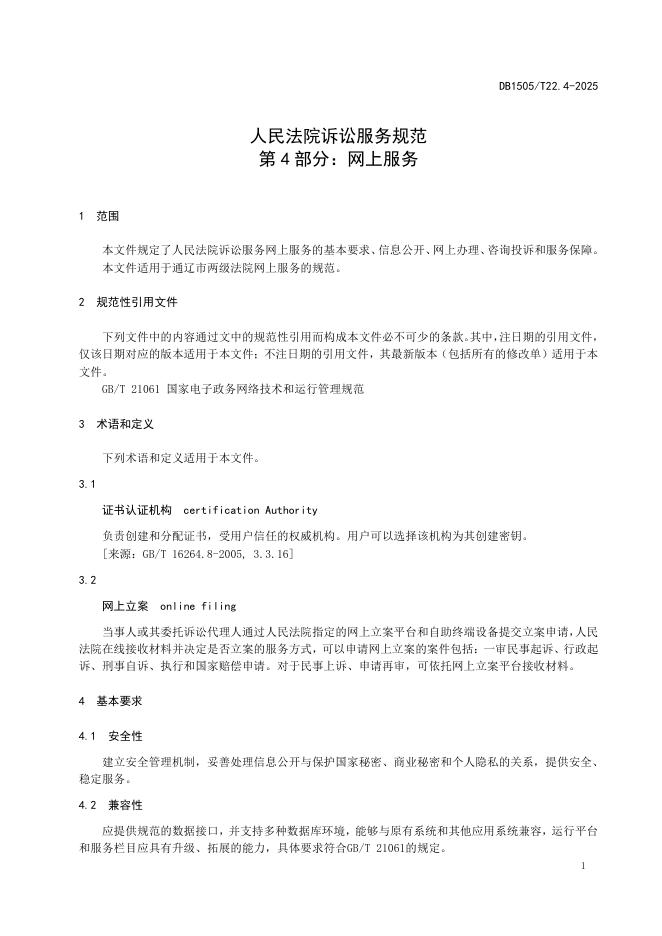 DB1505/T 22.4-2025 人民法院诉讼服务规范 第4部分:网上服务