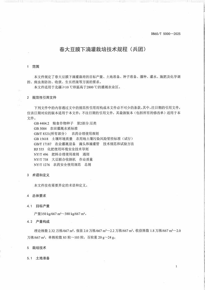 DB65/T 5000-2025 春大豆膜下滴灌栽培技术规程(兵团)
