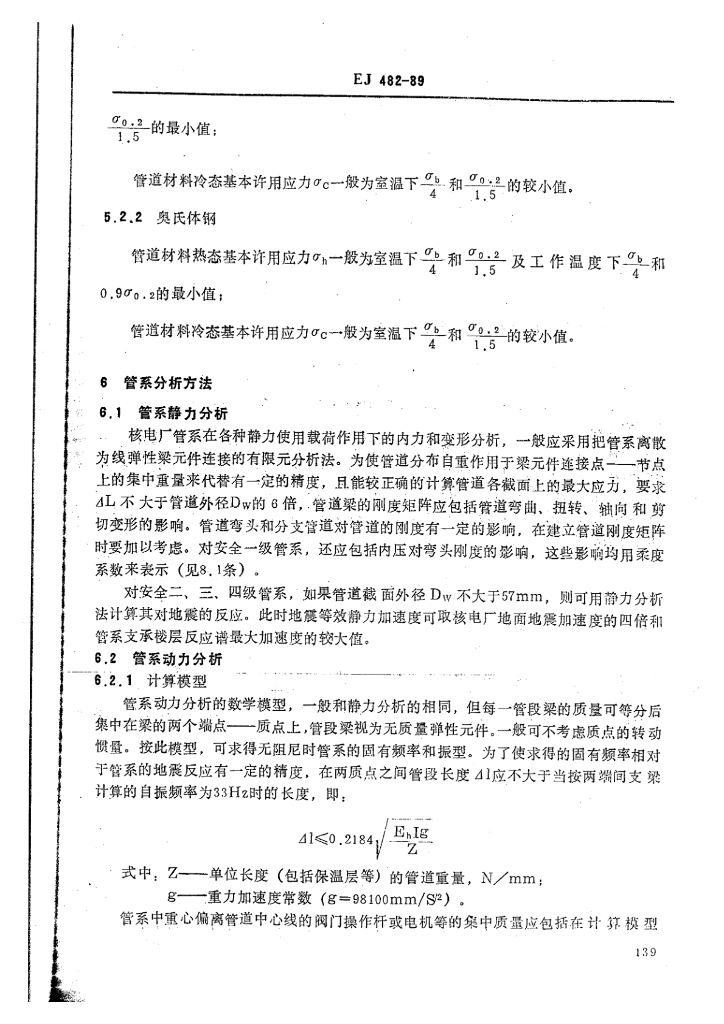 EJ/T 482-1989 三十万千瓦压水堆核电厂 管系强度分析