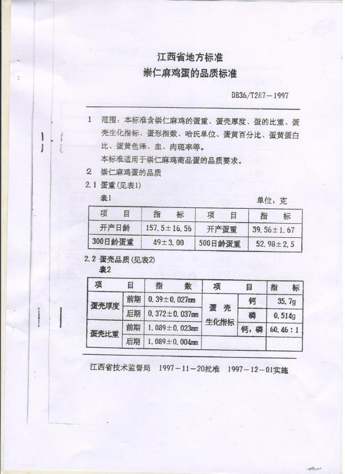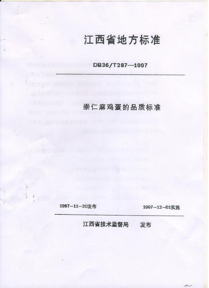 DB36/T 287-1997 崇仁麻鸡蛋的品质标准