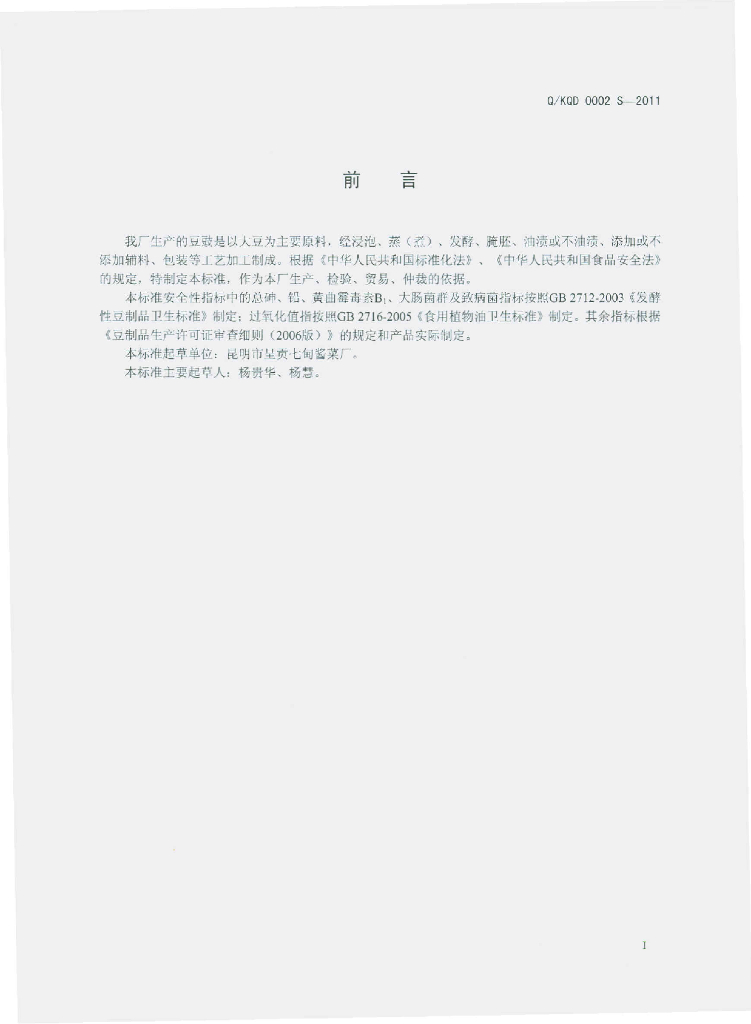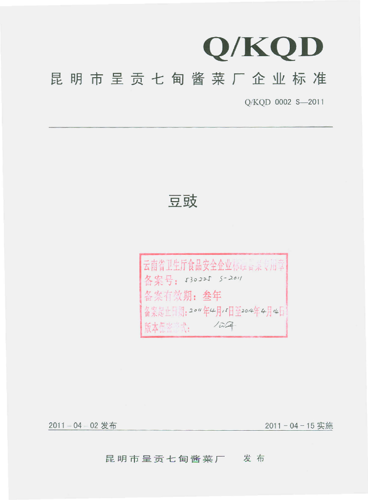 Q/KQD 0002S-2011 豆豉