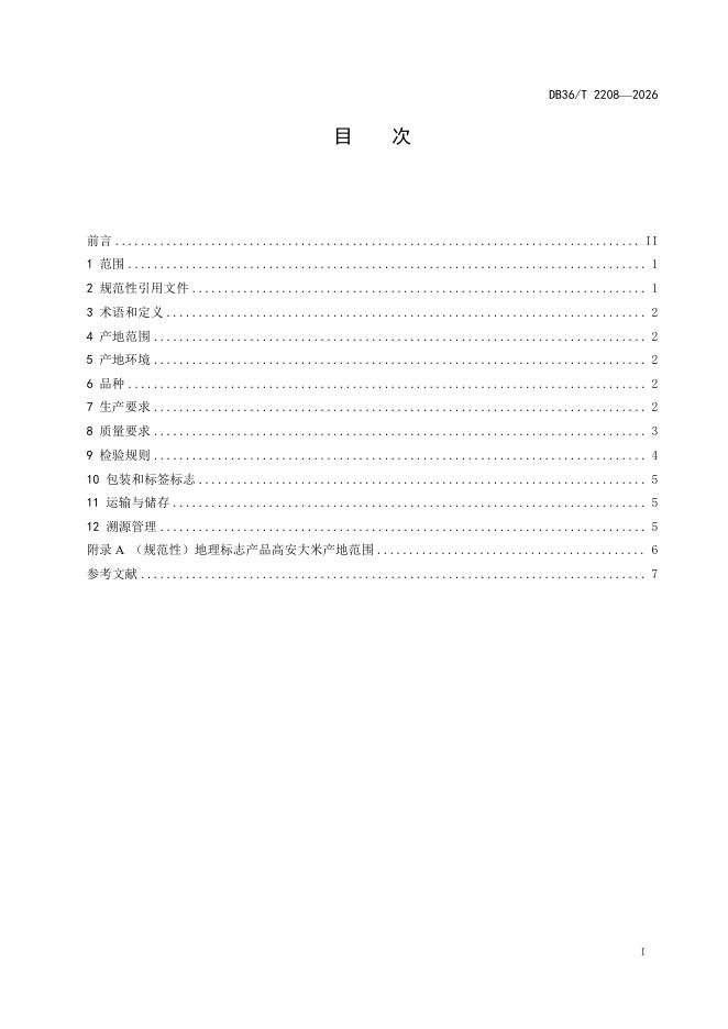 DB36/T 2208-2026 地理标志产品质量要求 高安大米