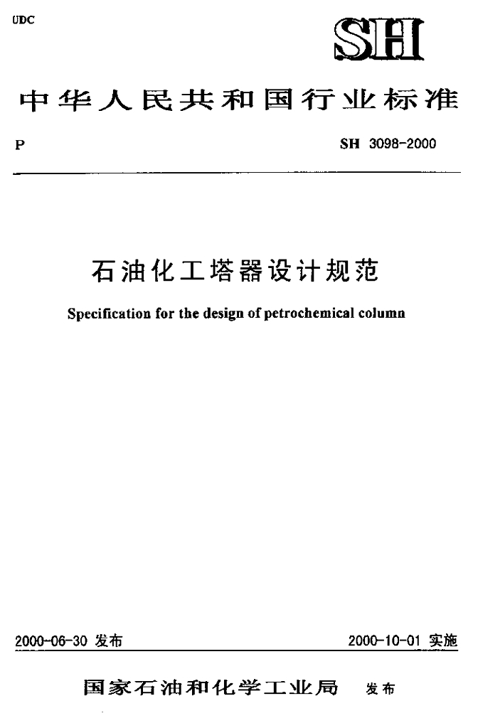 SH 3098-2000 石油化工塔器设计规范