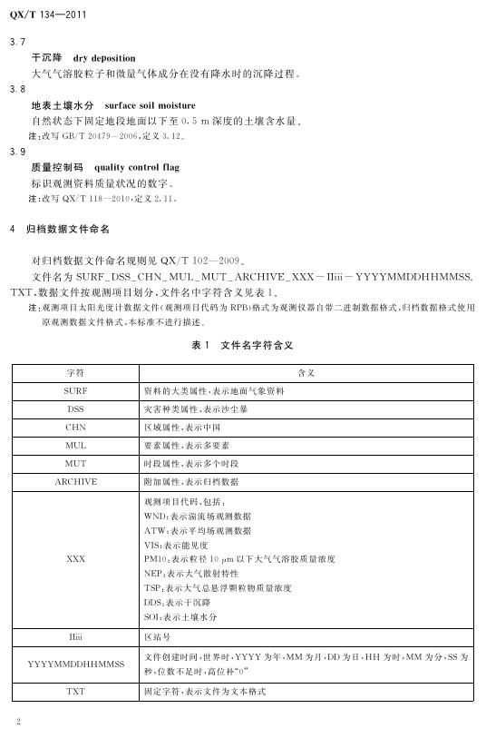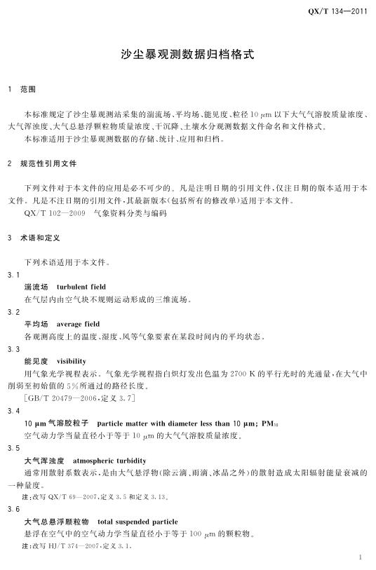 QX/T 134-2011 沙尘暴观测数据归档格式