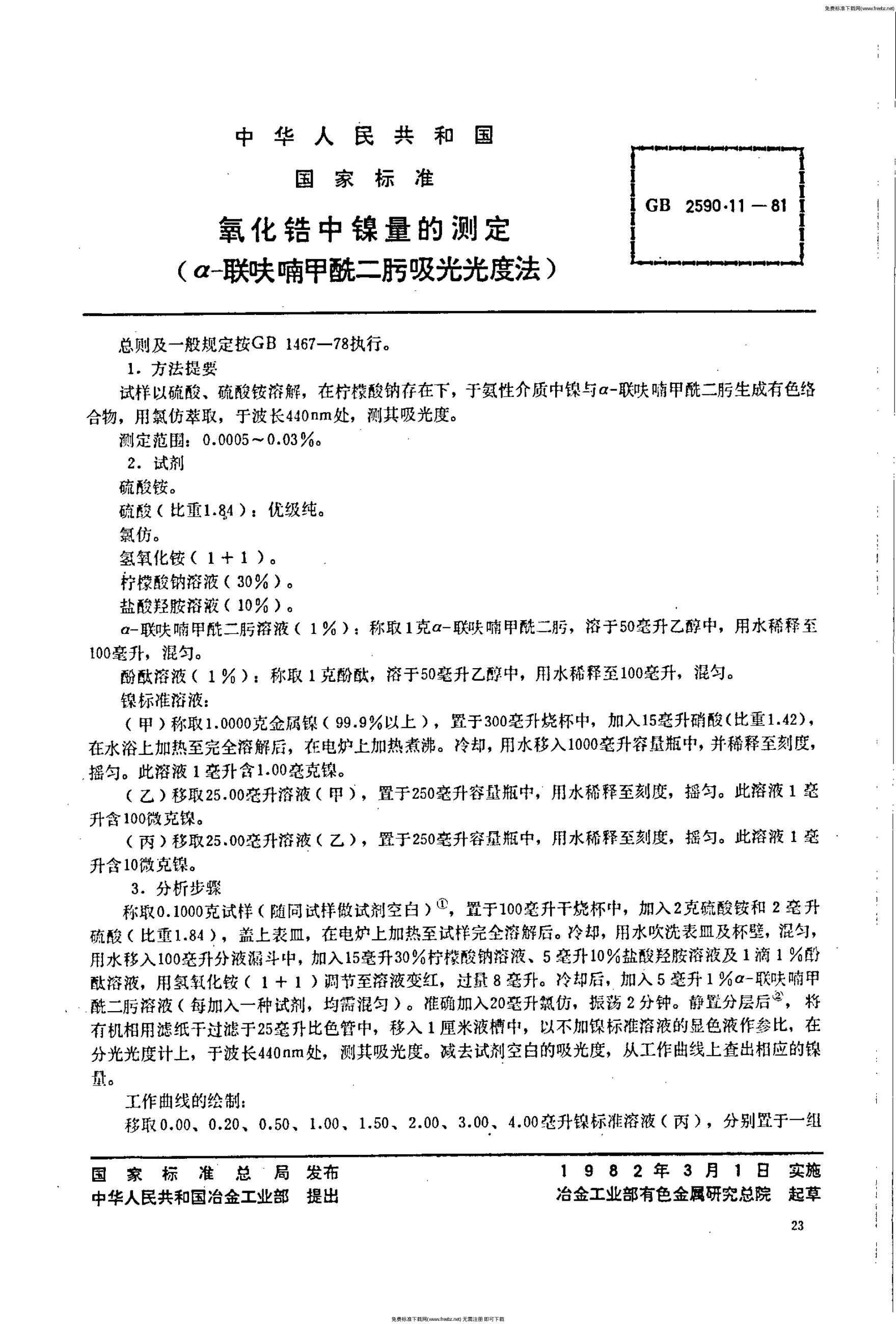 GB/T 2590.11-1981 氧化锆中镍量的测定 α-联呋喃甲酰二肟吸光光度法