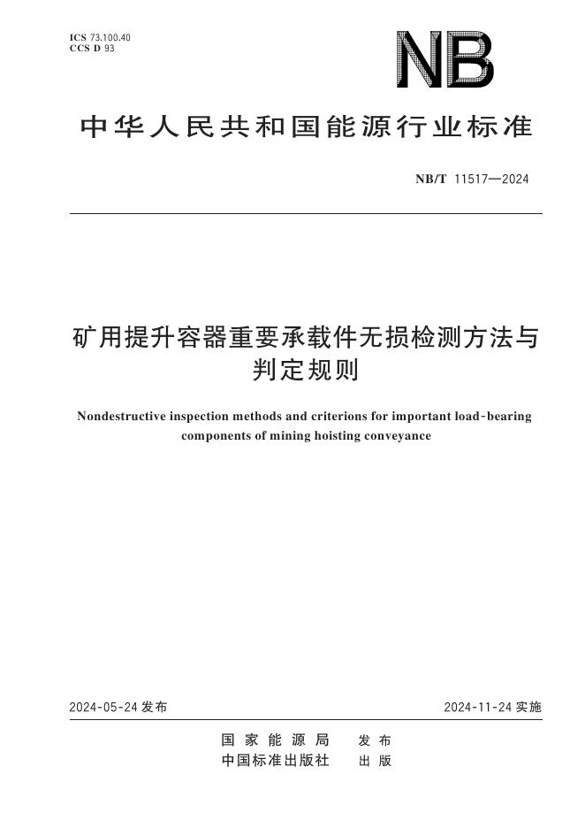 NB/T 11517-2024 矿用提升容器重要承载件无损检测方法与判定规则