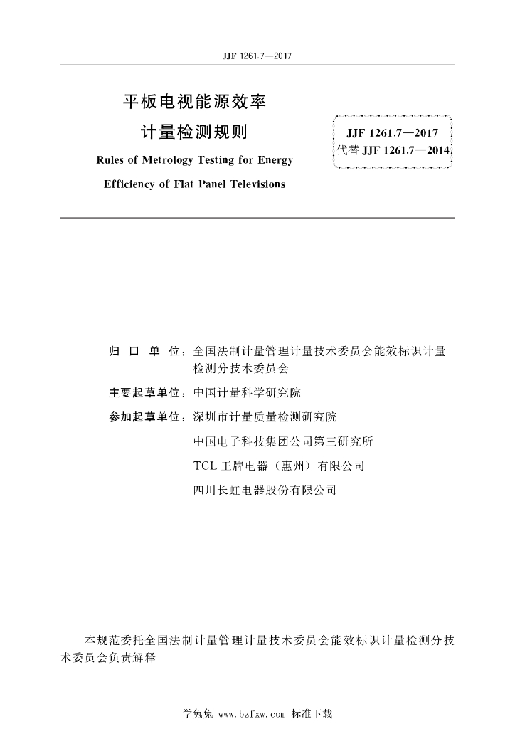 中国计量科学研究院、深圳市计量质量检测研究院、中国电子科技集团公司第三研究所、TCL王牌电器(惠州)有限公司、四川长虹电器股份有限公司