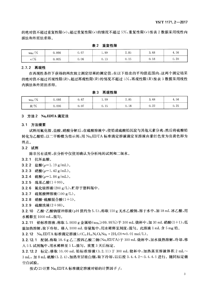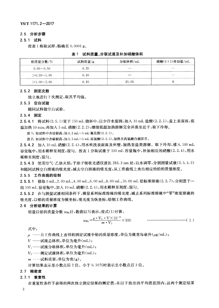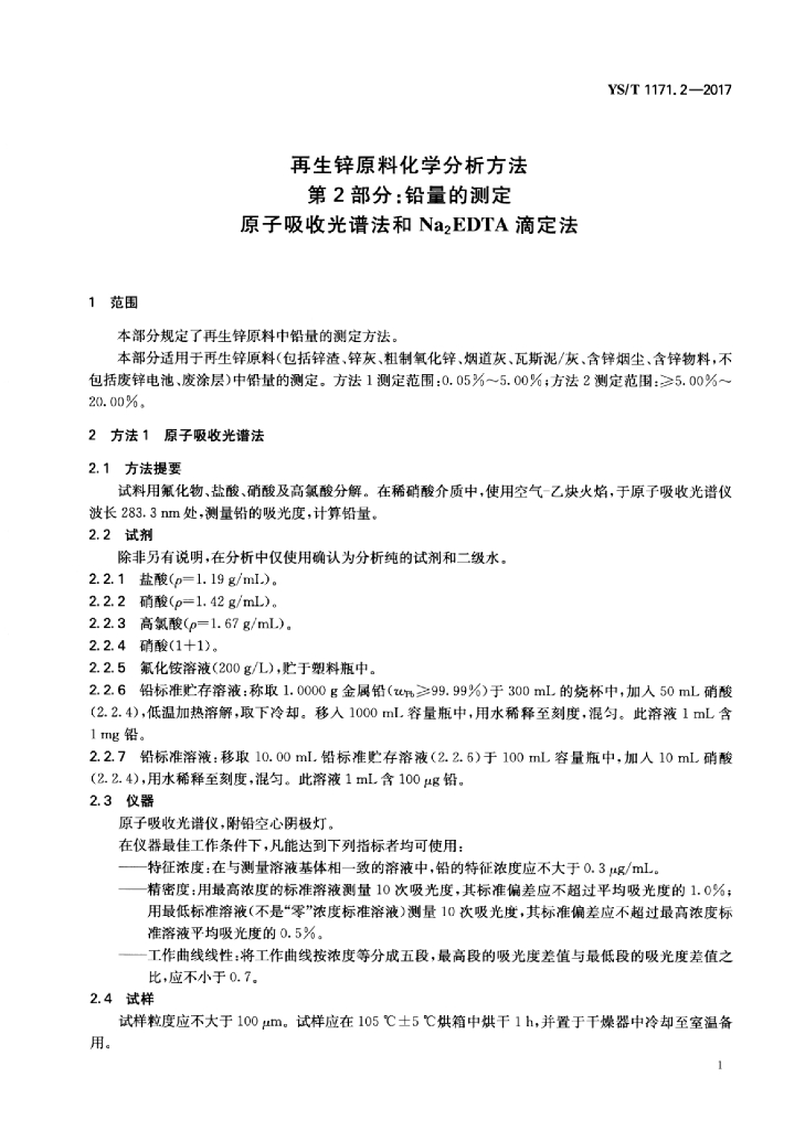YS/T 1171.2-2017 再生锌原料化学分析方法 第2部分:铅量的测定原子吸收光谱法和Na2EDTA滴定法