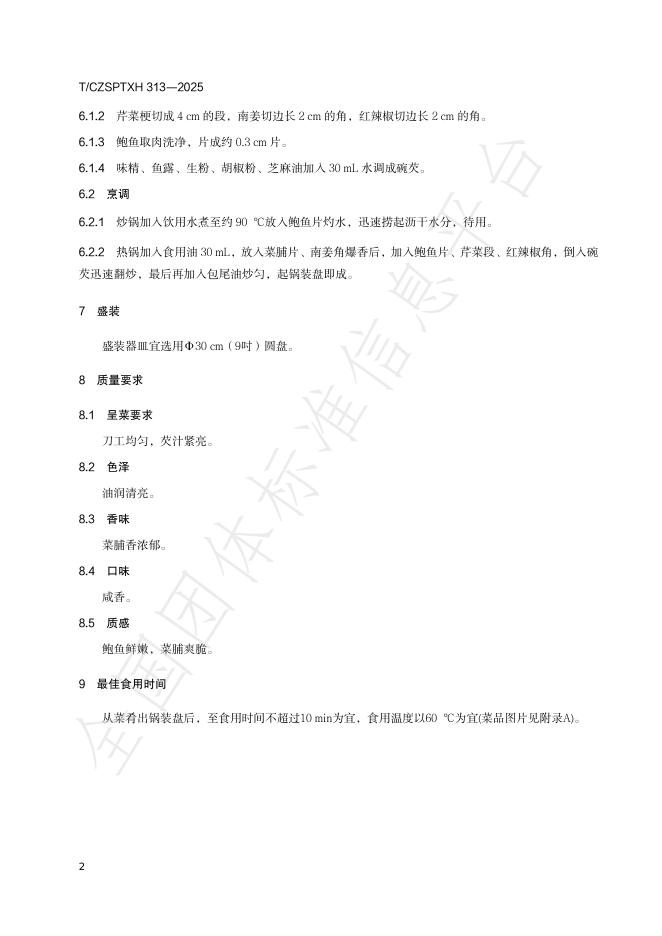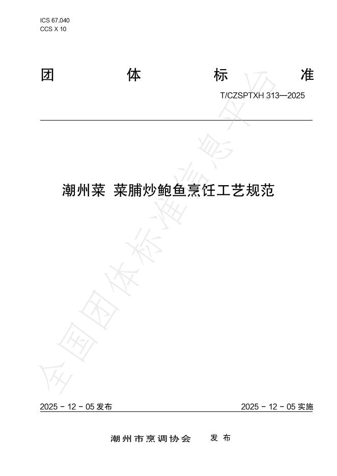 T/CZSPTXH 313-2025 潮州菜 菜脯炒鲍鱼烹饪工艺规范