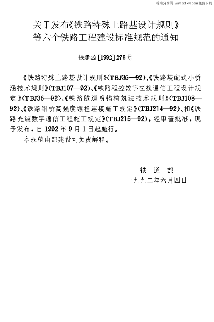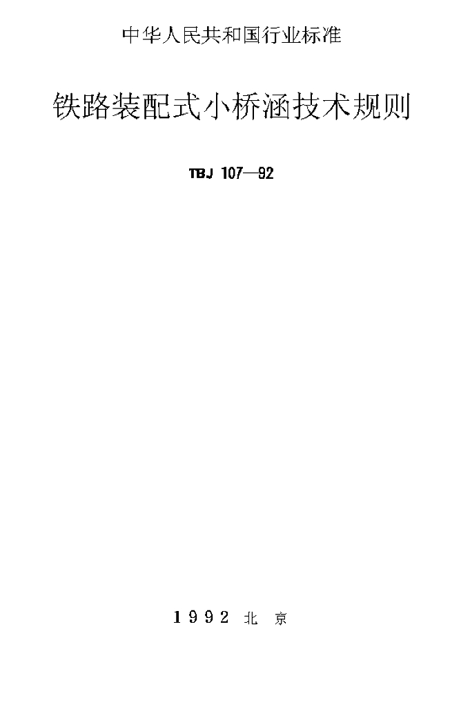 TBJ 107-1992 铁路装配式小桥涵技术规则