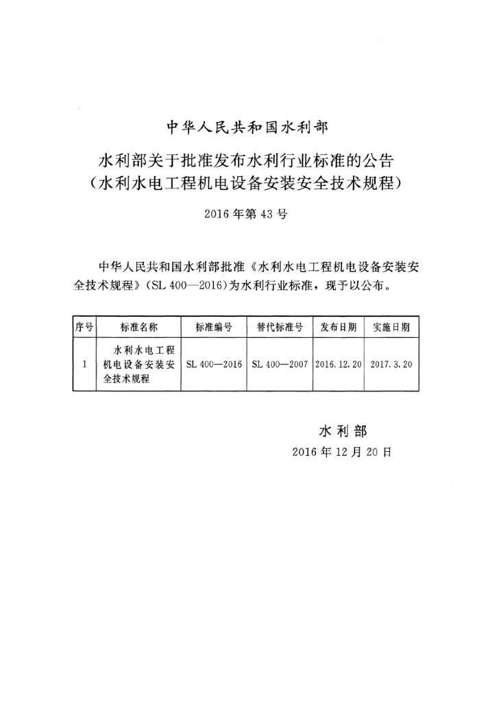 SL 400-2016 水利水电工程机电设备安装安全技术规程(附条文说明)