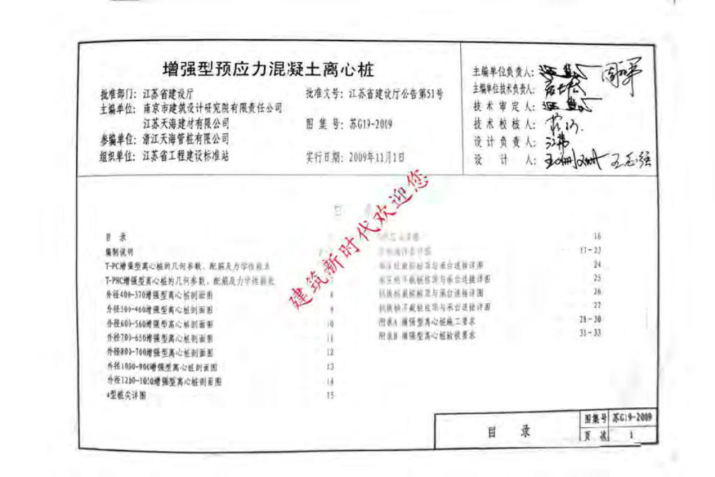 苏G19-2009 增强型预应力混凝土离心桩图集