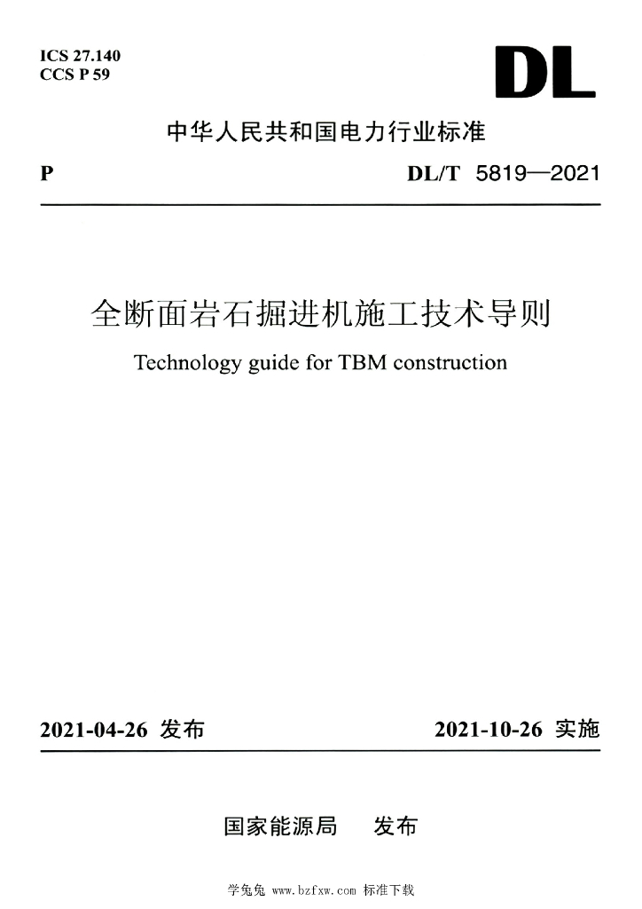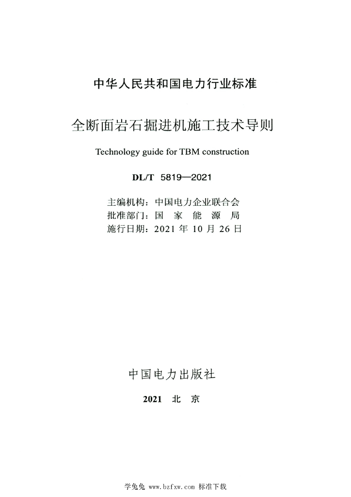 DL/T 5819-2021 全断面岩石掘进机施工技术导则