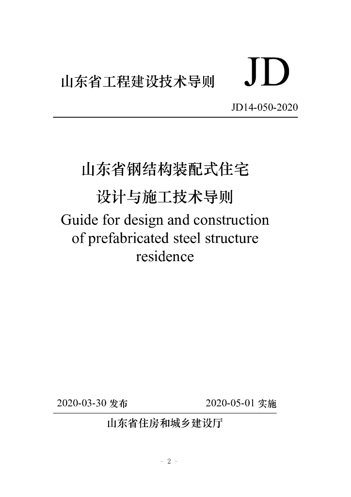 JD 14-050-2020 山东省钢结构装配式住宅设计与施工技术导则