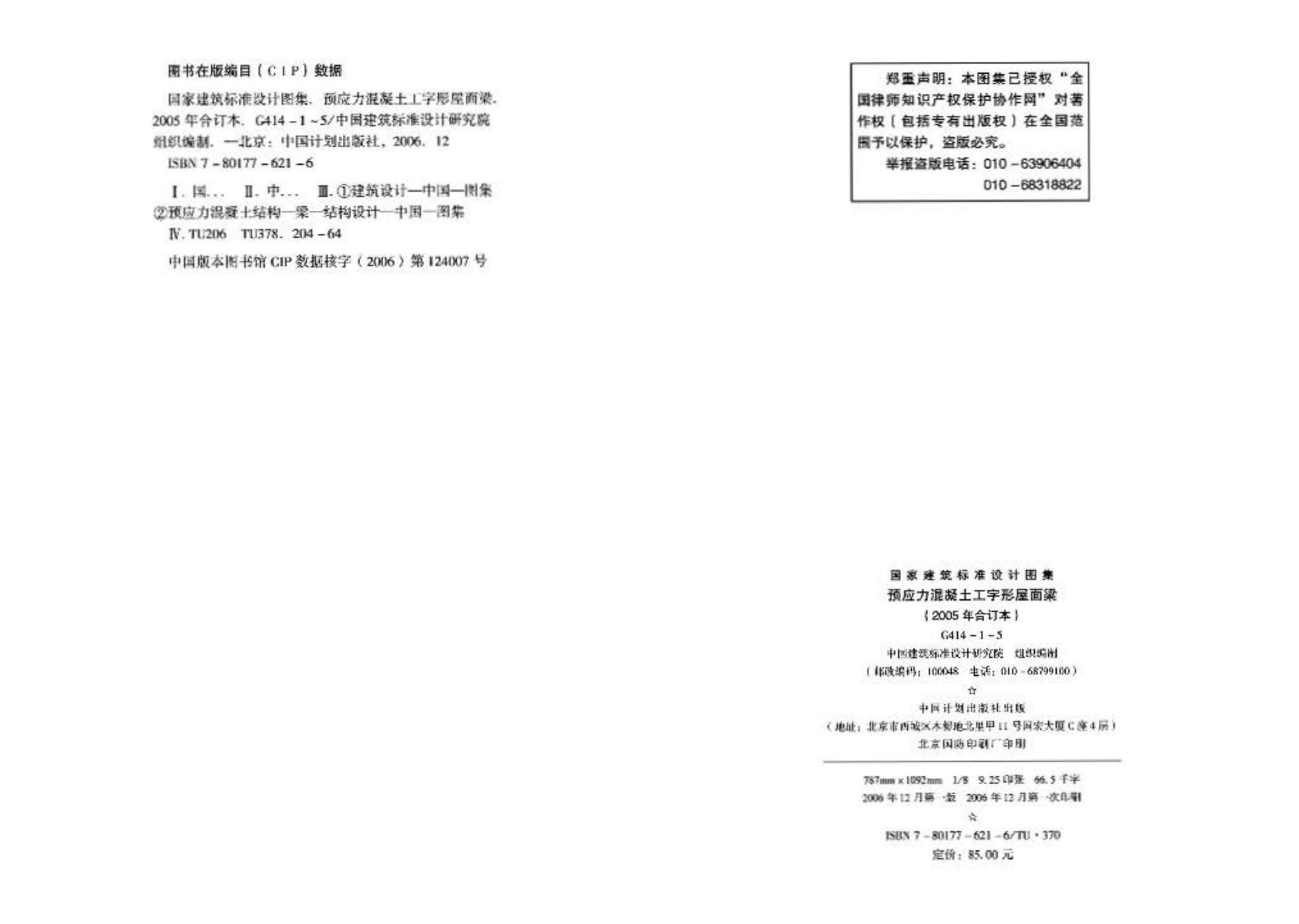 G414-1~5 预应力混凝土工字形屋面梁设计图集(2005年合订本)