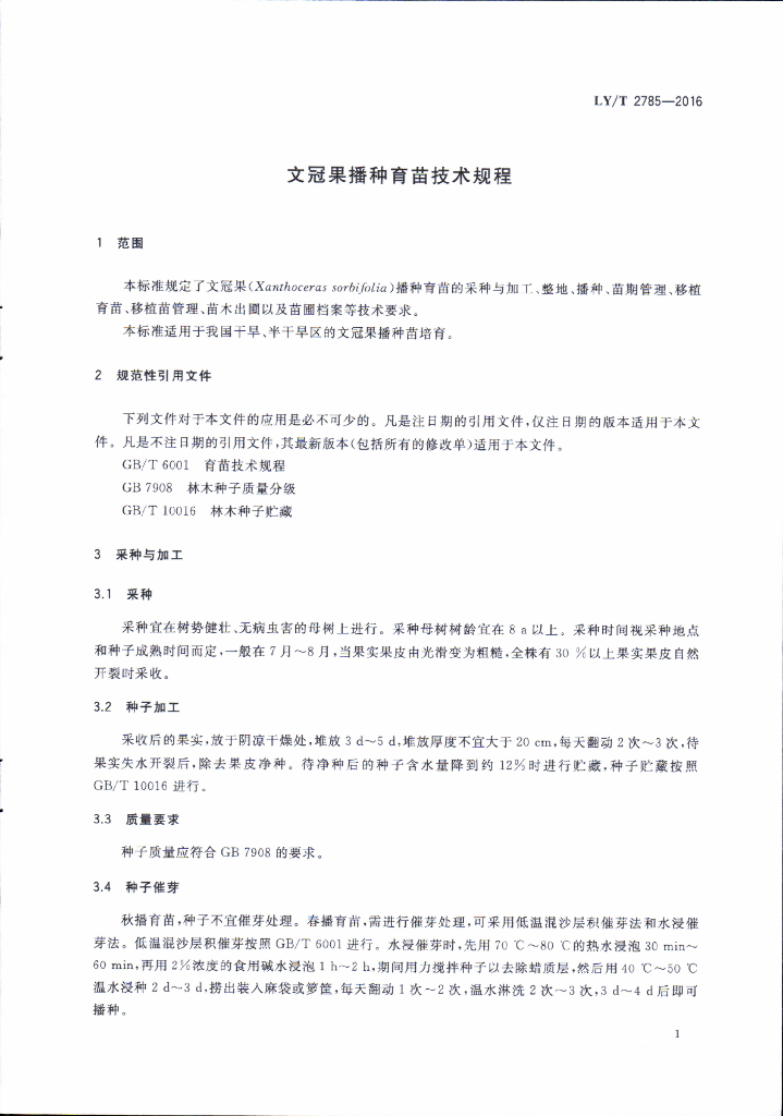 LY/T 2785-2016 文冠果播种育苗技术规程