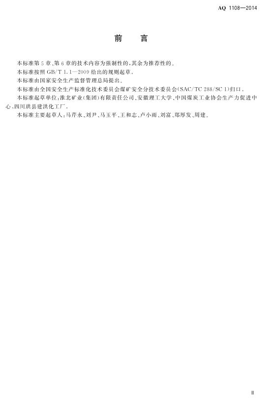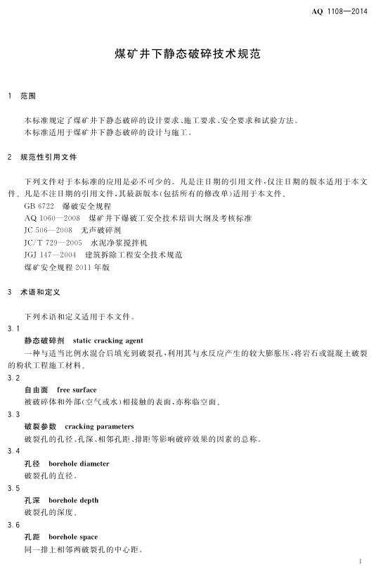 AQ 1108-2014 煤矿井下静态破碎技术规范