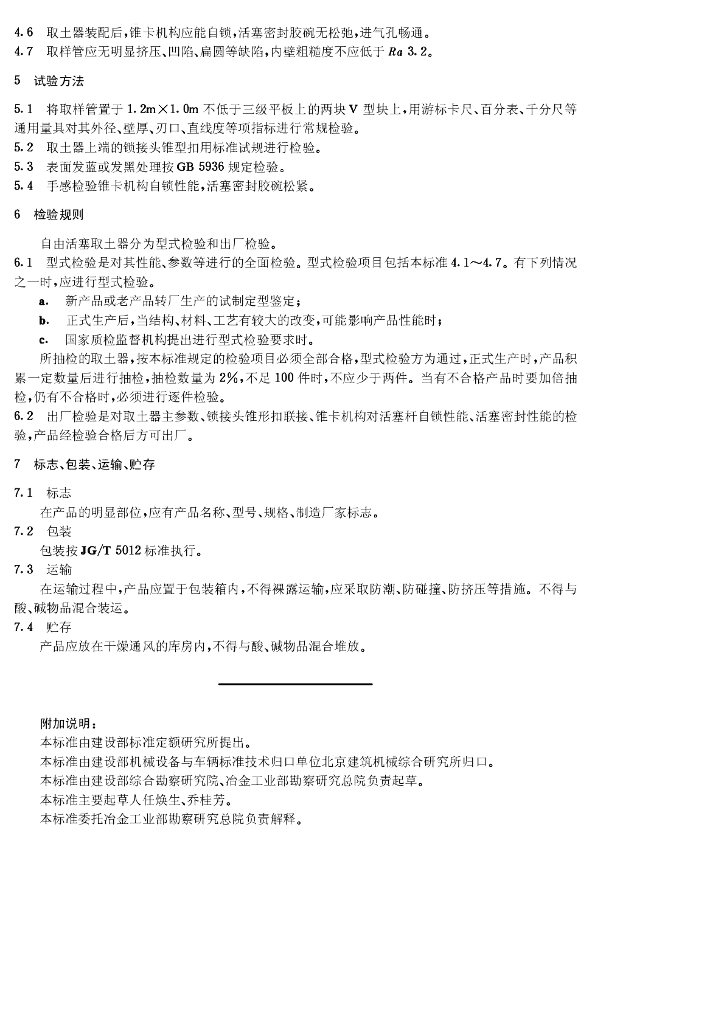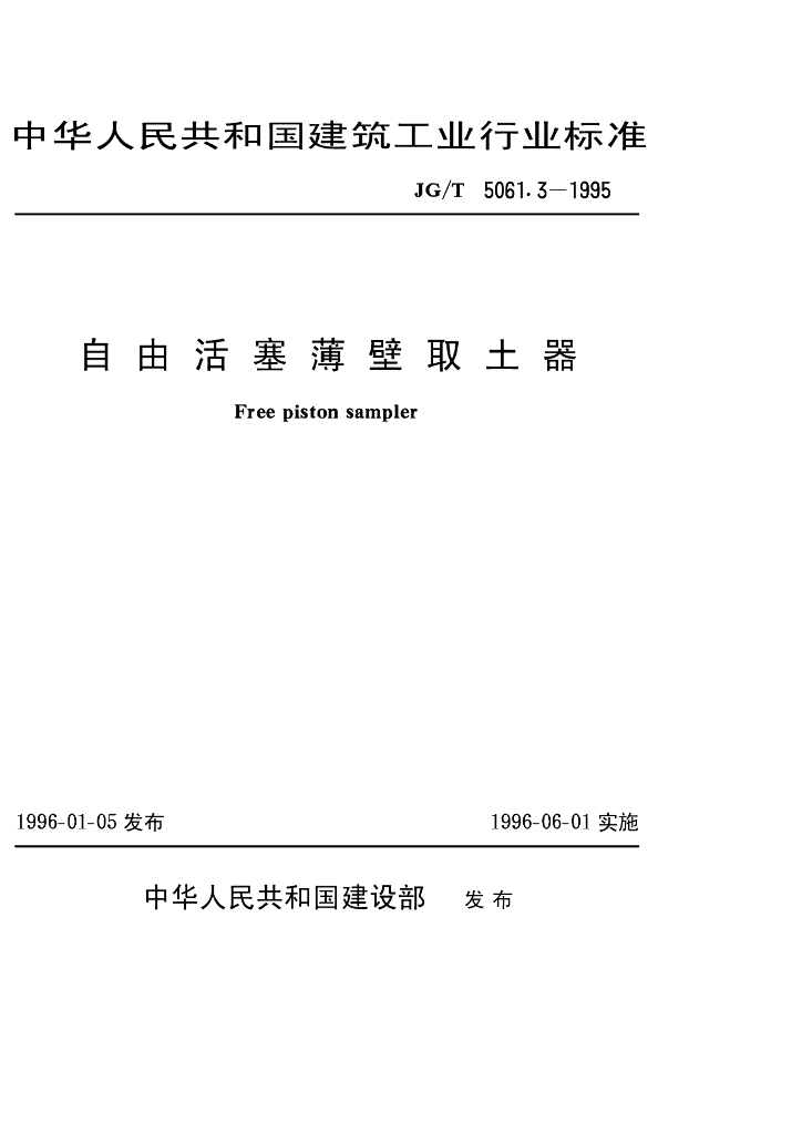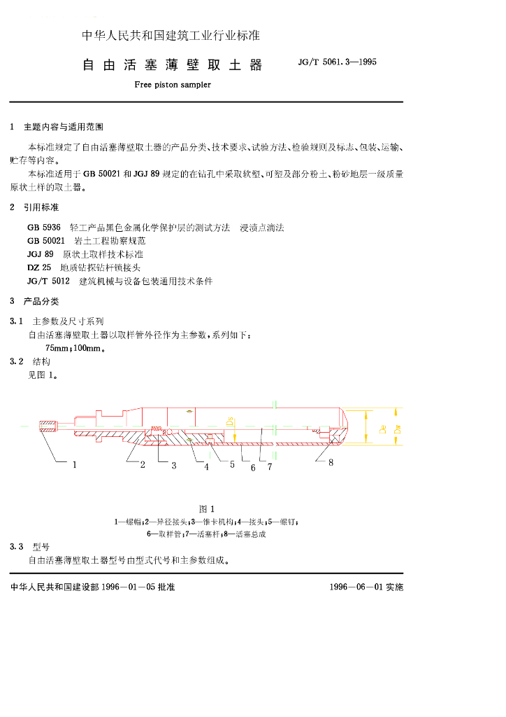JG/T 5061.3-1995 自由活塞薄壁取土器