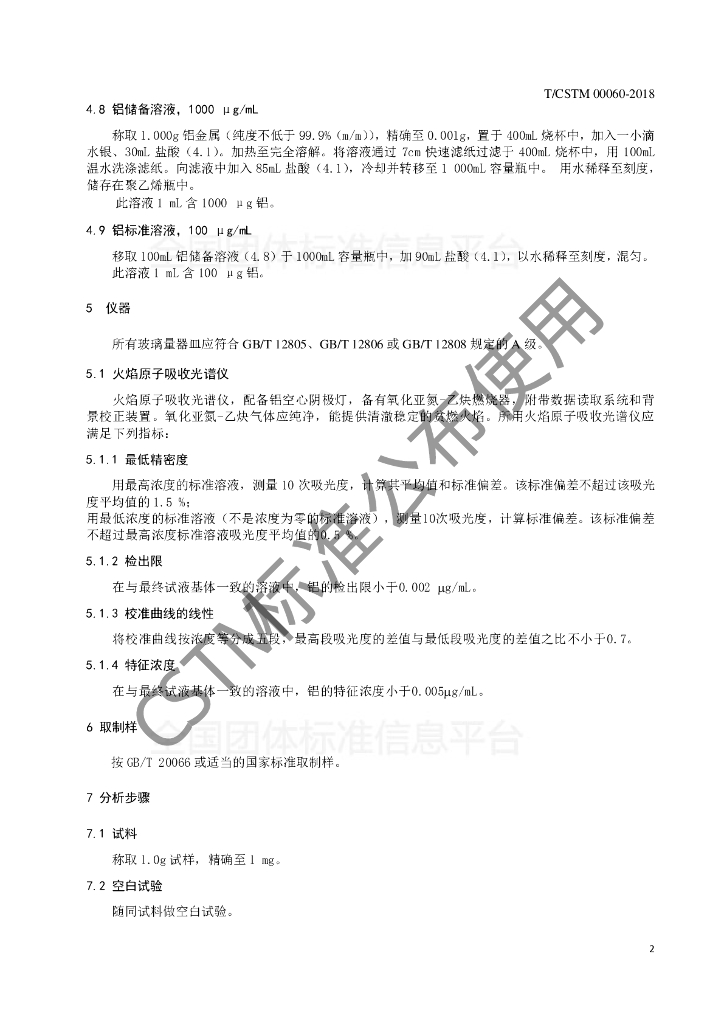 T/CSTM 00060-2018 镍合金 铝含量的测定 火焰原子吸收光谱法