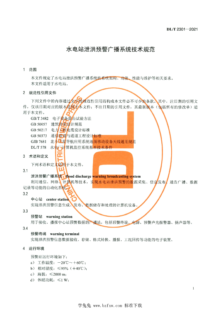DL/T 2301-2021 水电站泄洪预警广播系统技术规范