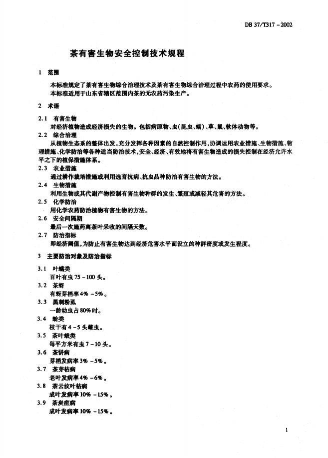 DB37/T 317-2002 茶有害生物安全控制技术规程