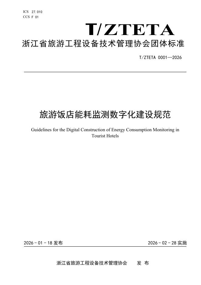 T/ZTETA 0001-2026 旅游饭店能耗监测数字化建设规范