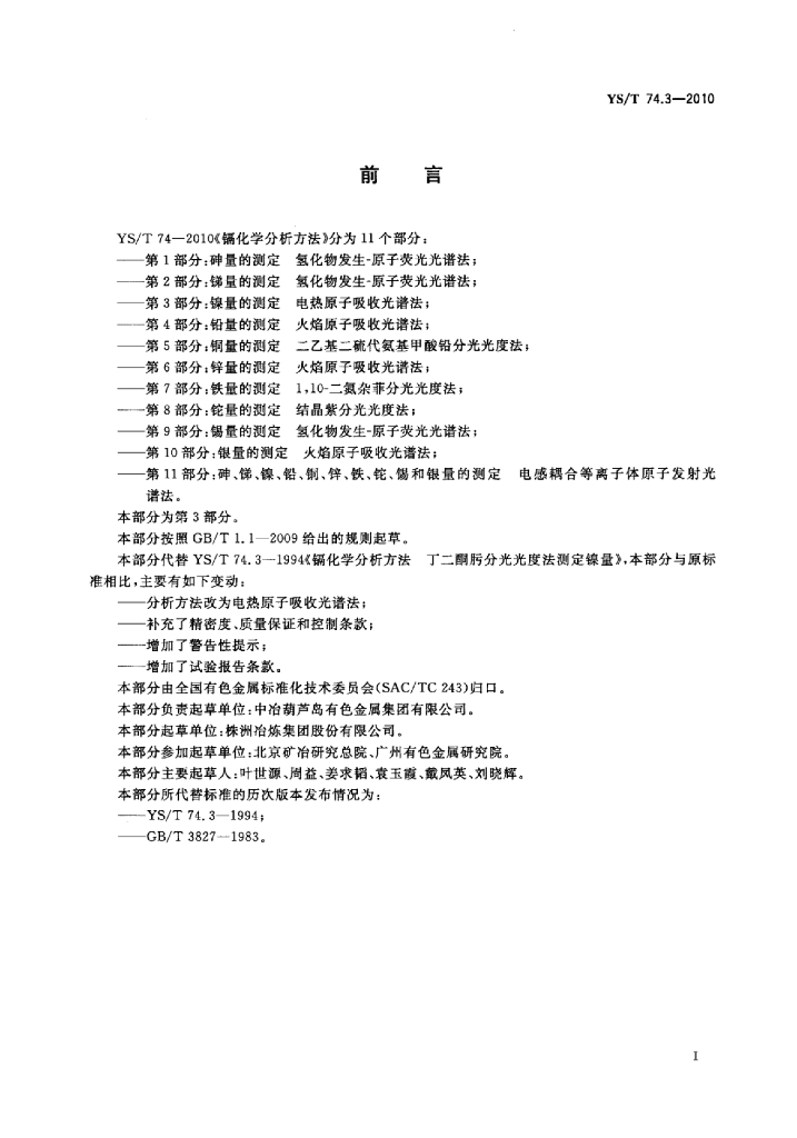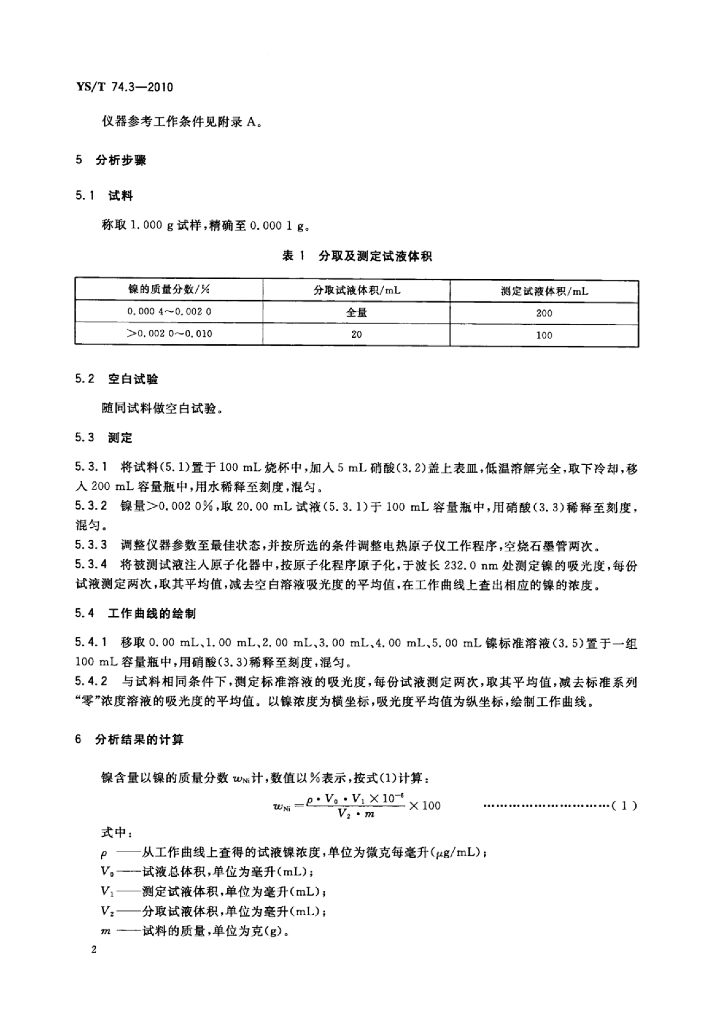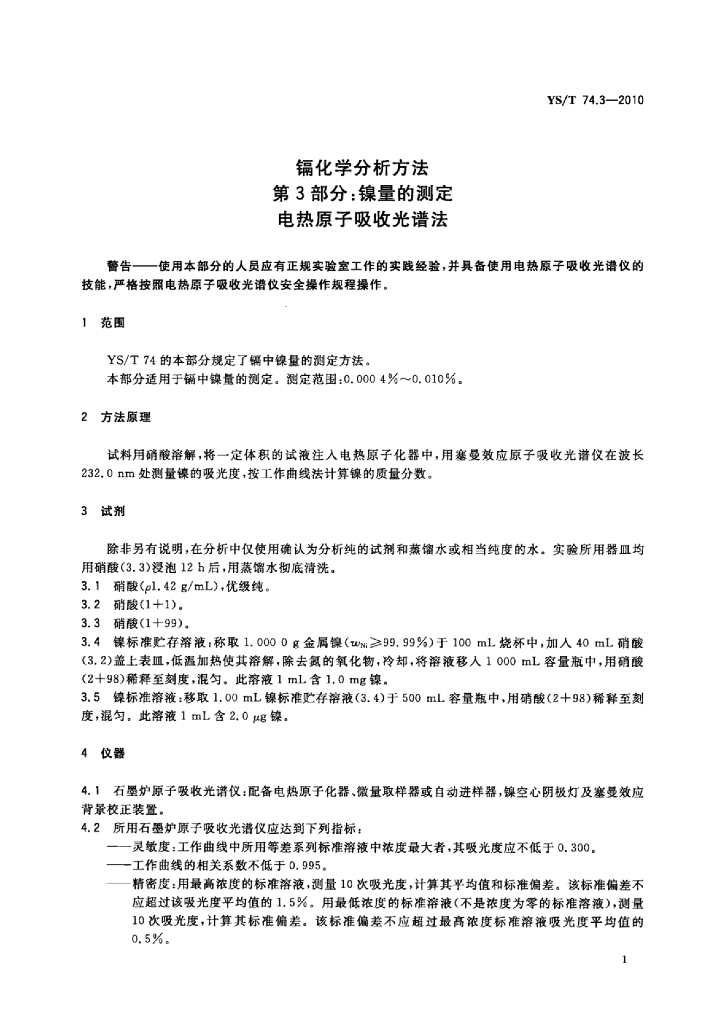 YS/T 74.3-2010 镉化学分析方法 第3部分:镍量的测定电热原子吸收光谱法