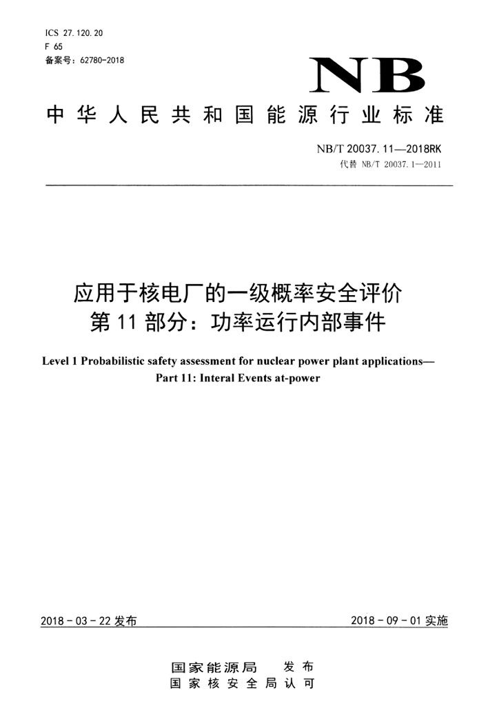 NB/T 20037.11-2018RK 应用于核电厂的一级概率安全评价 第11部分:功率运行内部事件