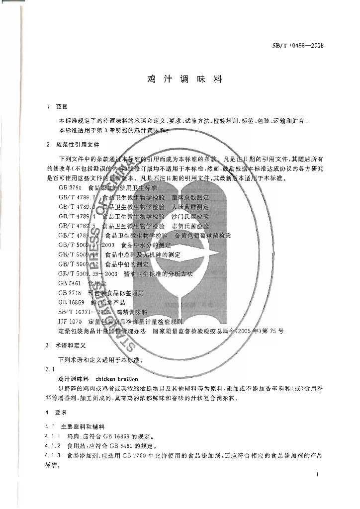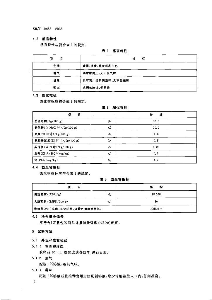 SB/T 10458-2008 鸡汁调味料