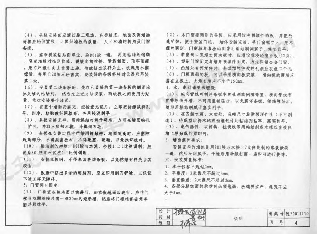 皖2001J110 轻质多孔条板隔墙构造图集