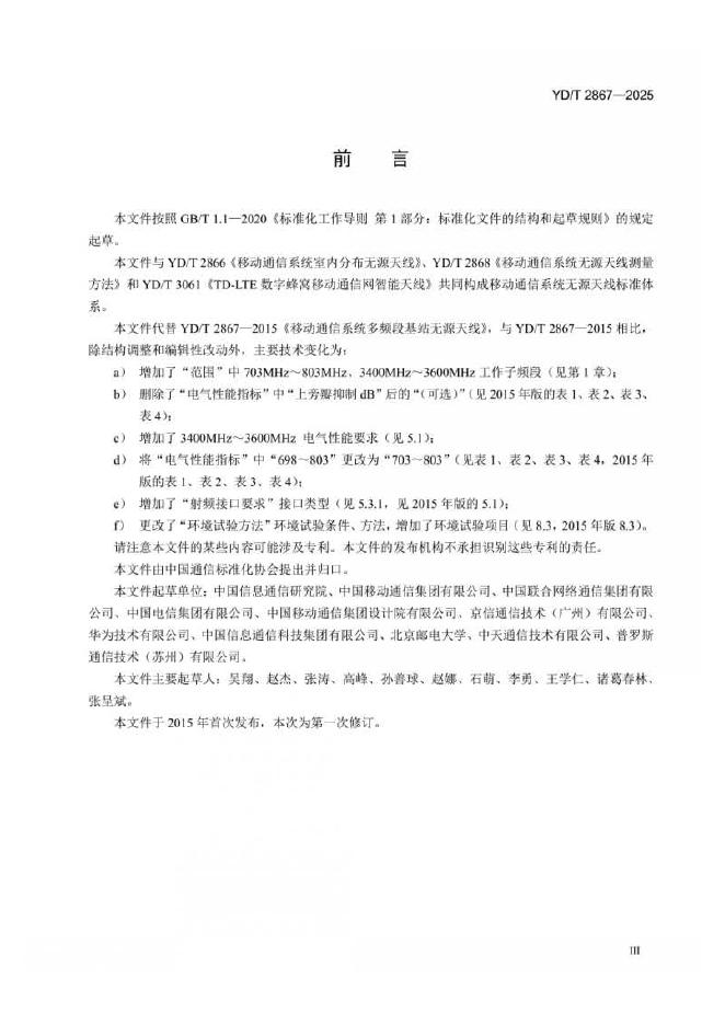 中国信息通信研究院、中国移动通信集团有限公司、中国联合网络通信集团有限公司、中国电信集团有限公司、中国移动通信集团设计院有限公司、京信通信技术(广州)有限公司、华为技术有限公司、中国信息通信科技集团有限公司、北京邮电大学、中天通信技术有限公司、普罗斯通信技术(苏州)有限公司。
