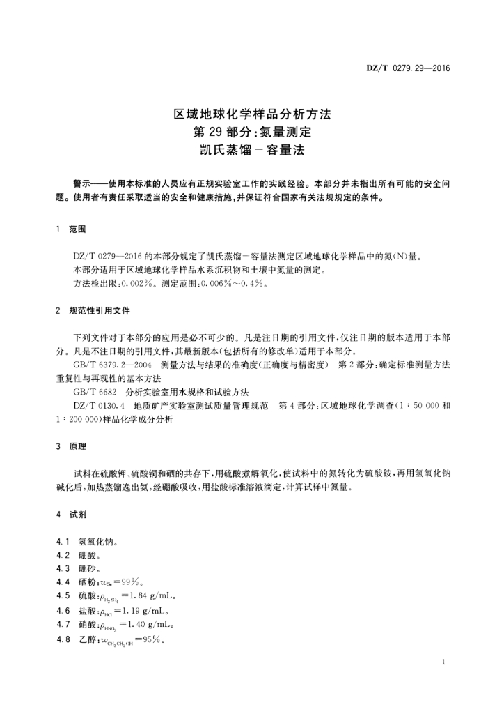 DZ/T 0279.29-2016 区域地球化学样品分析方法 第29部分:氮量测定凯氏蒸馏-容量法