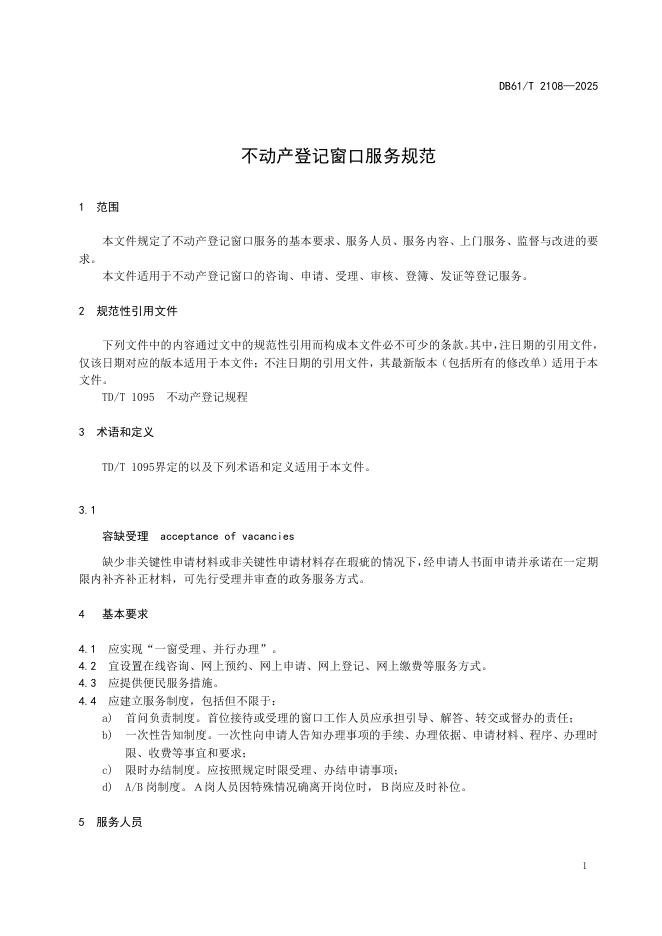 DB61/T 2108-2025 不动产登记窗口服务规范