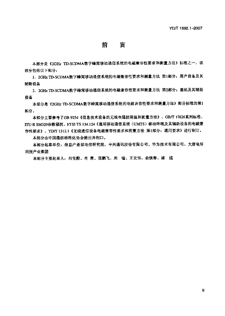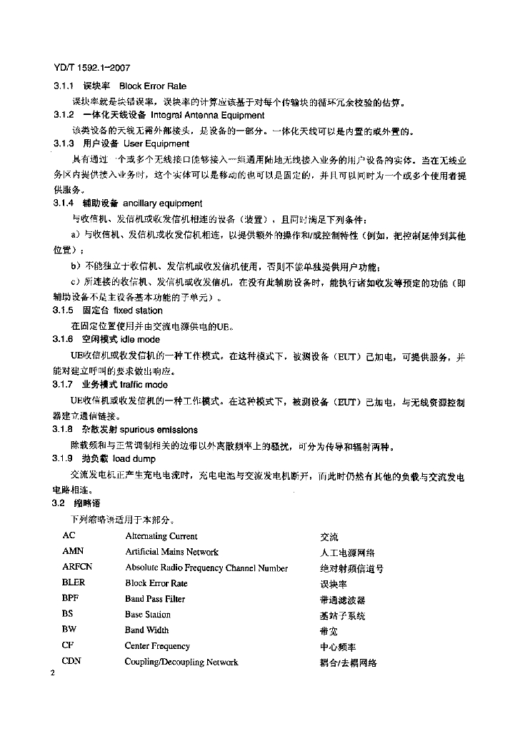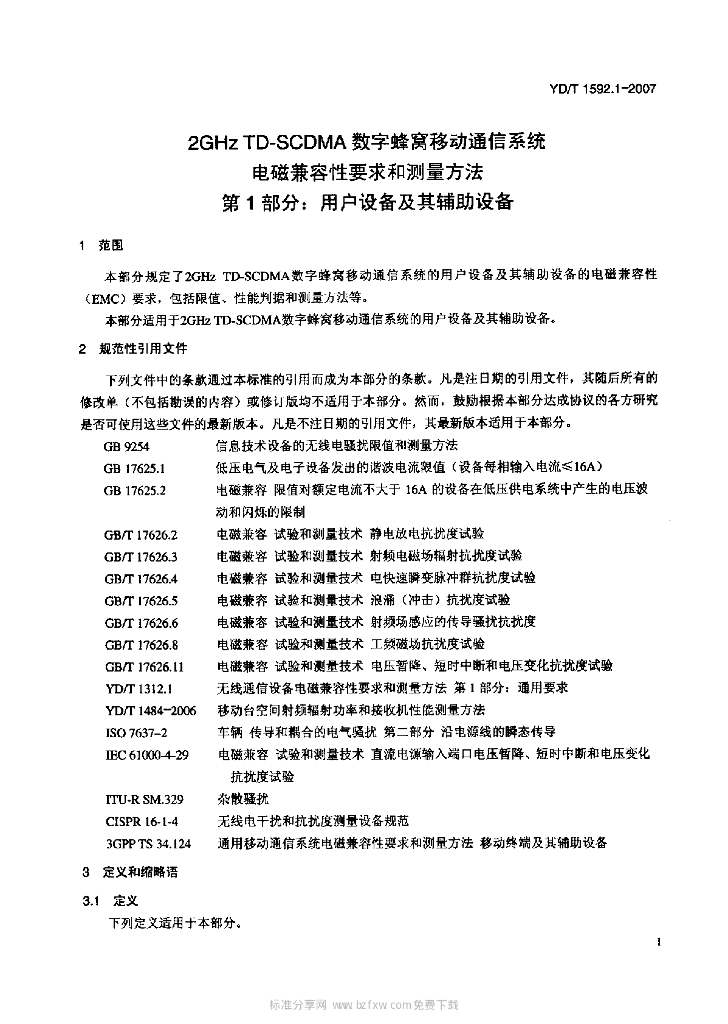 YD/T 1592.1-2007 2GHz TD-SCDMA 数字蜂窝移动通信系统电磁兼容性要求和测量方法 第1部分:用户设备及其辅助设备