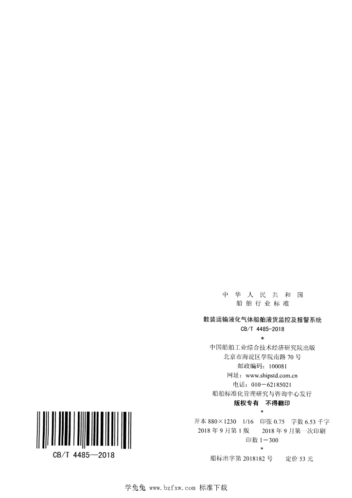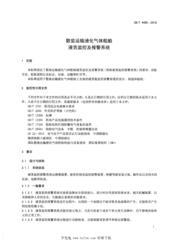 CB/T 4485-2018 散装运输液化气体船舶液货监控及报警系统