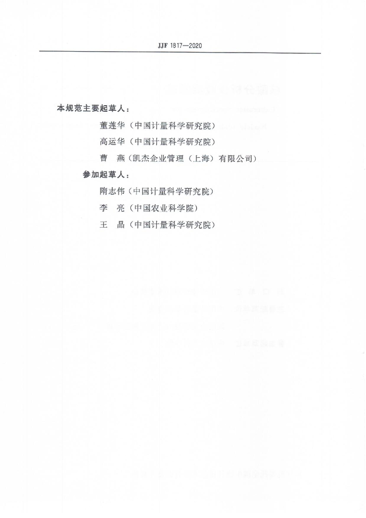 董莲华(中国计量科学研究院)、高运华(中国计量科学研究院)、曹燕(凯杰企业管理(上海)有限公司)、隋志伟(中国计量科学研究院)、李亮(中国农业科学院)、王晶(中国计量科学研究院)