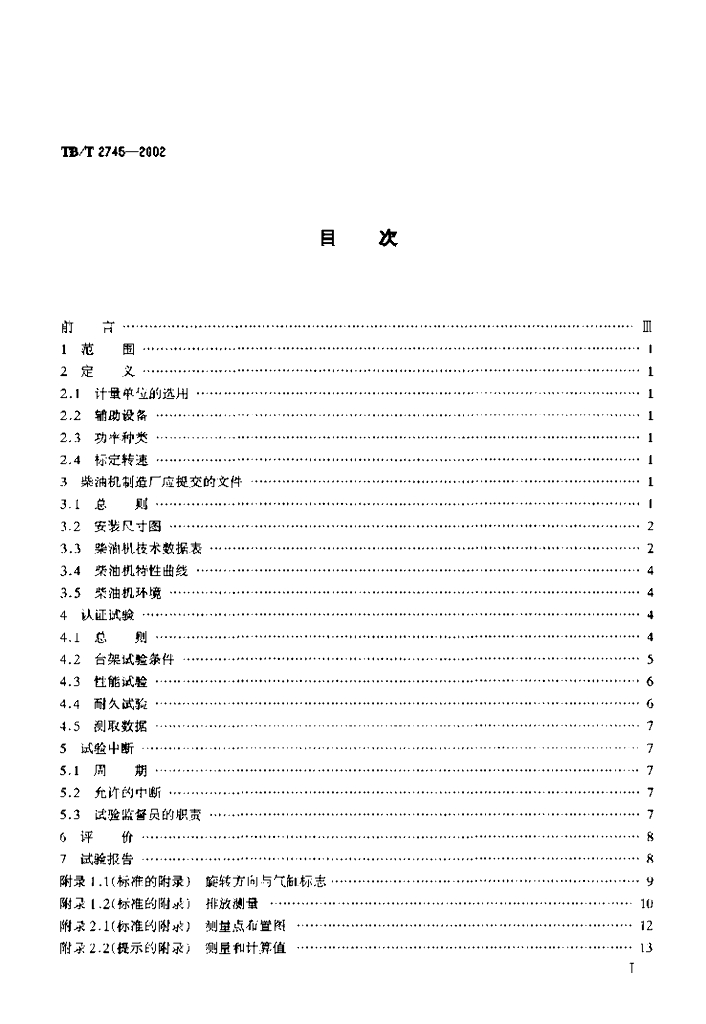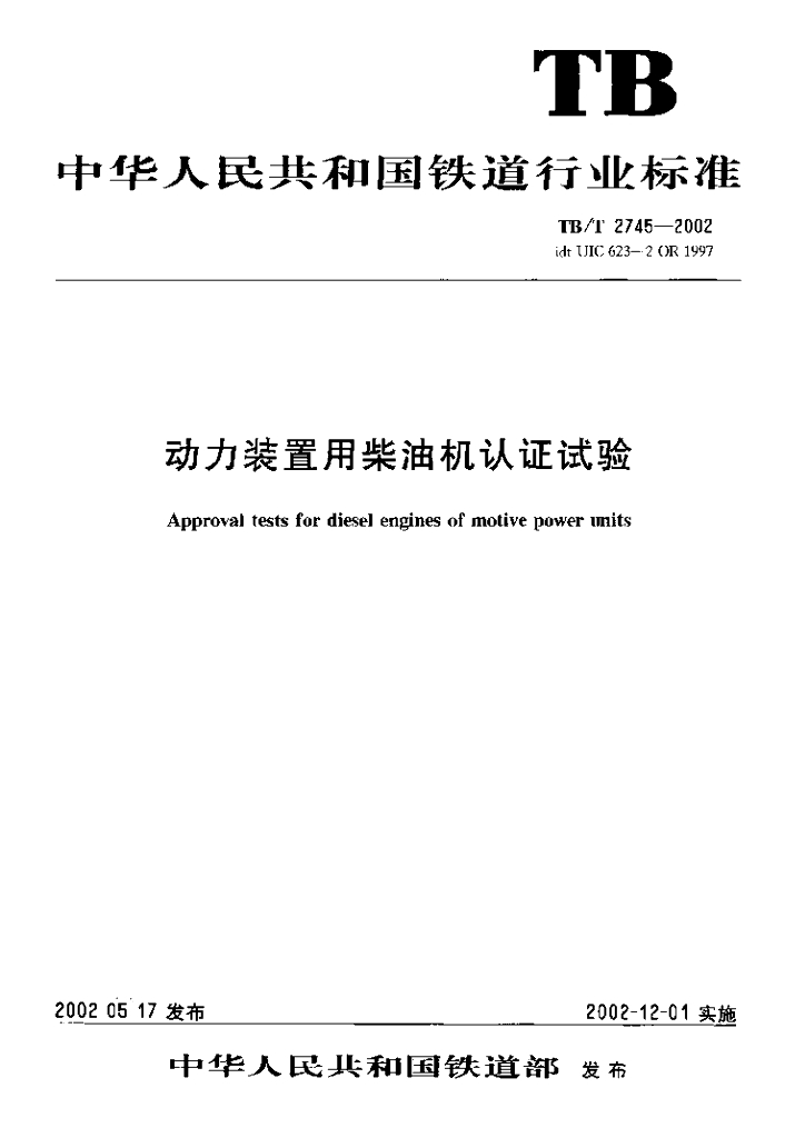 TB/T 2745-2002 动力装置用柴油机认证试验