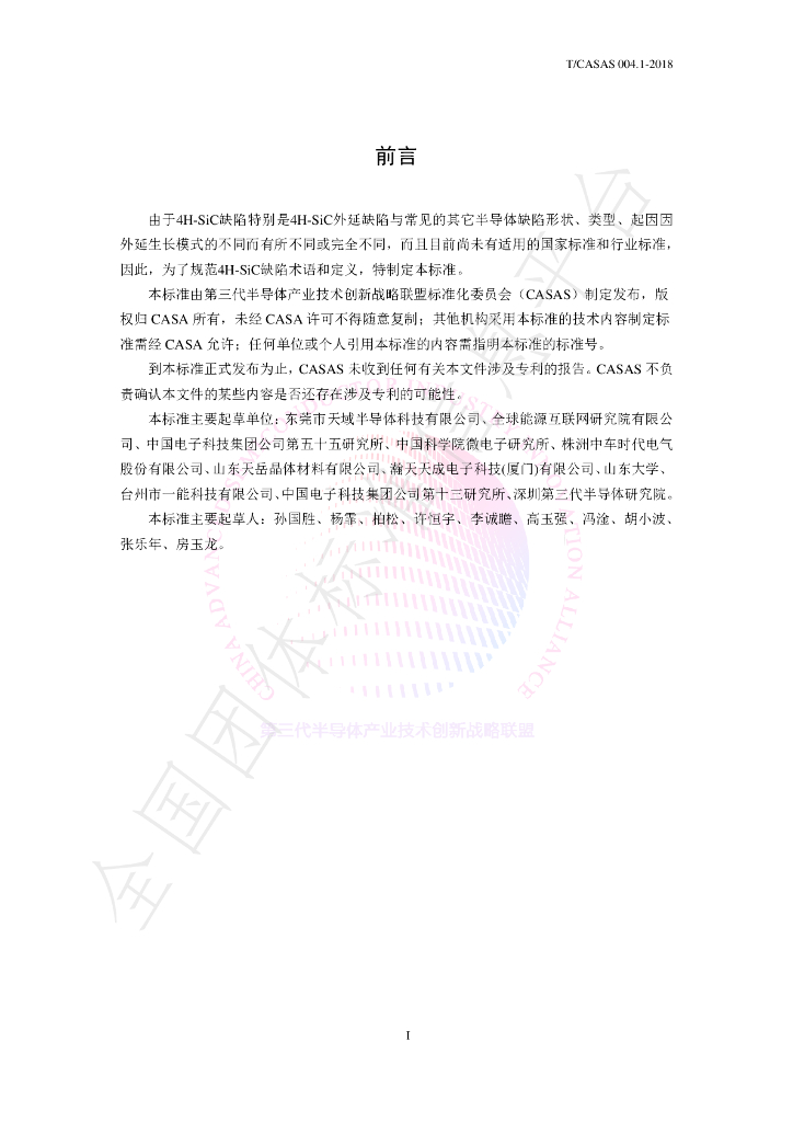 东莞市天域半导体科技有限公司、全球能源互联网研究院有限公司、中国电子科技集团公司第五十五研究所、中国科学院微电子研究所、株洲中车时代电气股份有限公司、山东天岳晶体材料有限公司、瀚天天成电子科技(厦门)有限公司、山东大学、台州市一能科技有限公司、中国电子科技集团公司第十三研究所、深圳第三代半导体研究院