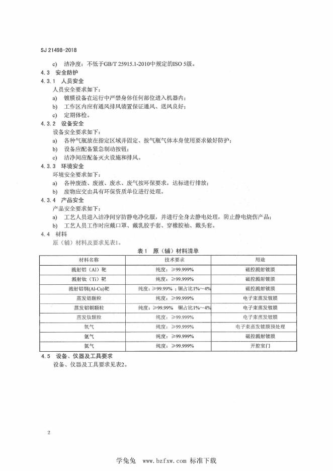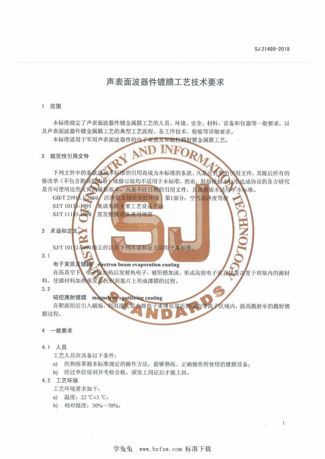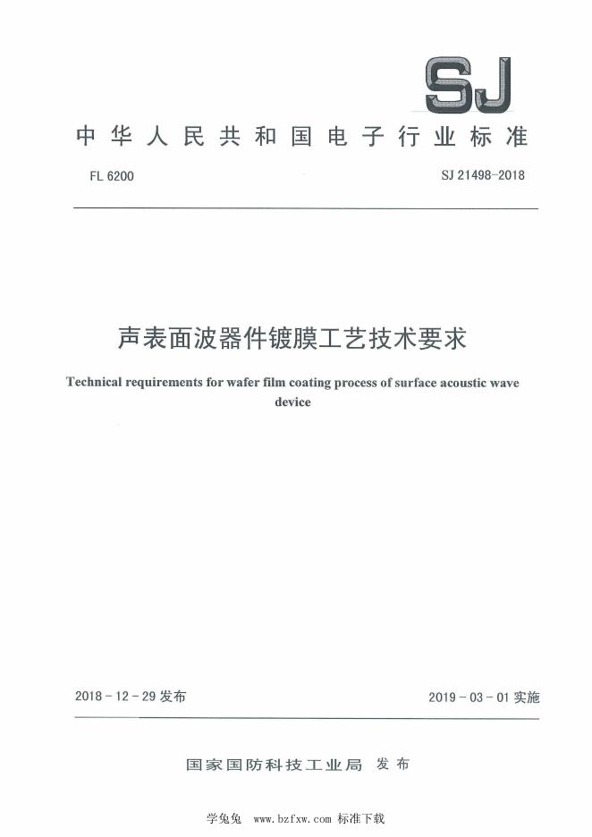 SJ 21498-2018 声表面波器件镀膜工艺技术要求
