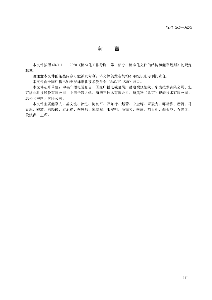 中央广播电视总台、国家广播电视总局广播电视规划院、华为技术有限公司、北京格非科技股份有限公司、中国传媒大学、新华三技术有限公司、新奥特(北京)视频技术有限公司、思科(中国)有限公司