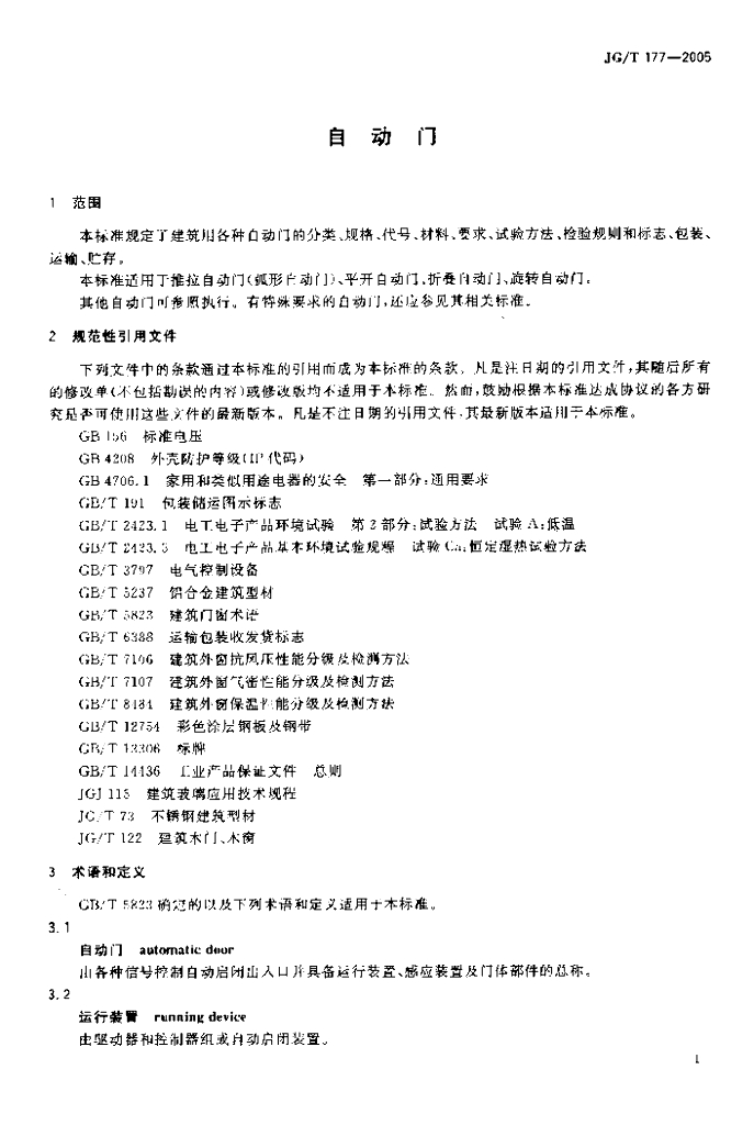 JG/T 177-2005 自动门