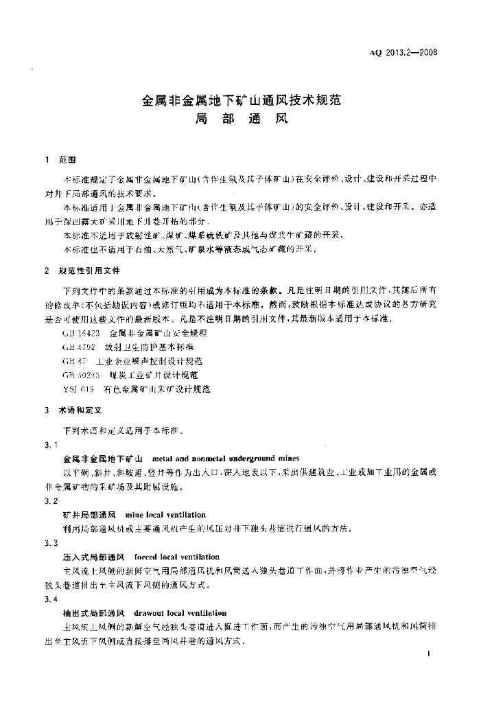AQ 2013.2-2008 金属非金属地下矿山通风技术规范局部通风