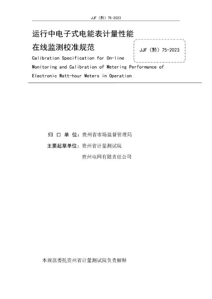 JJF(黔)75-2023 运行中电子式电能表计量性能在线监测校准规范(报批稿)