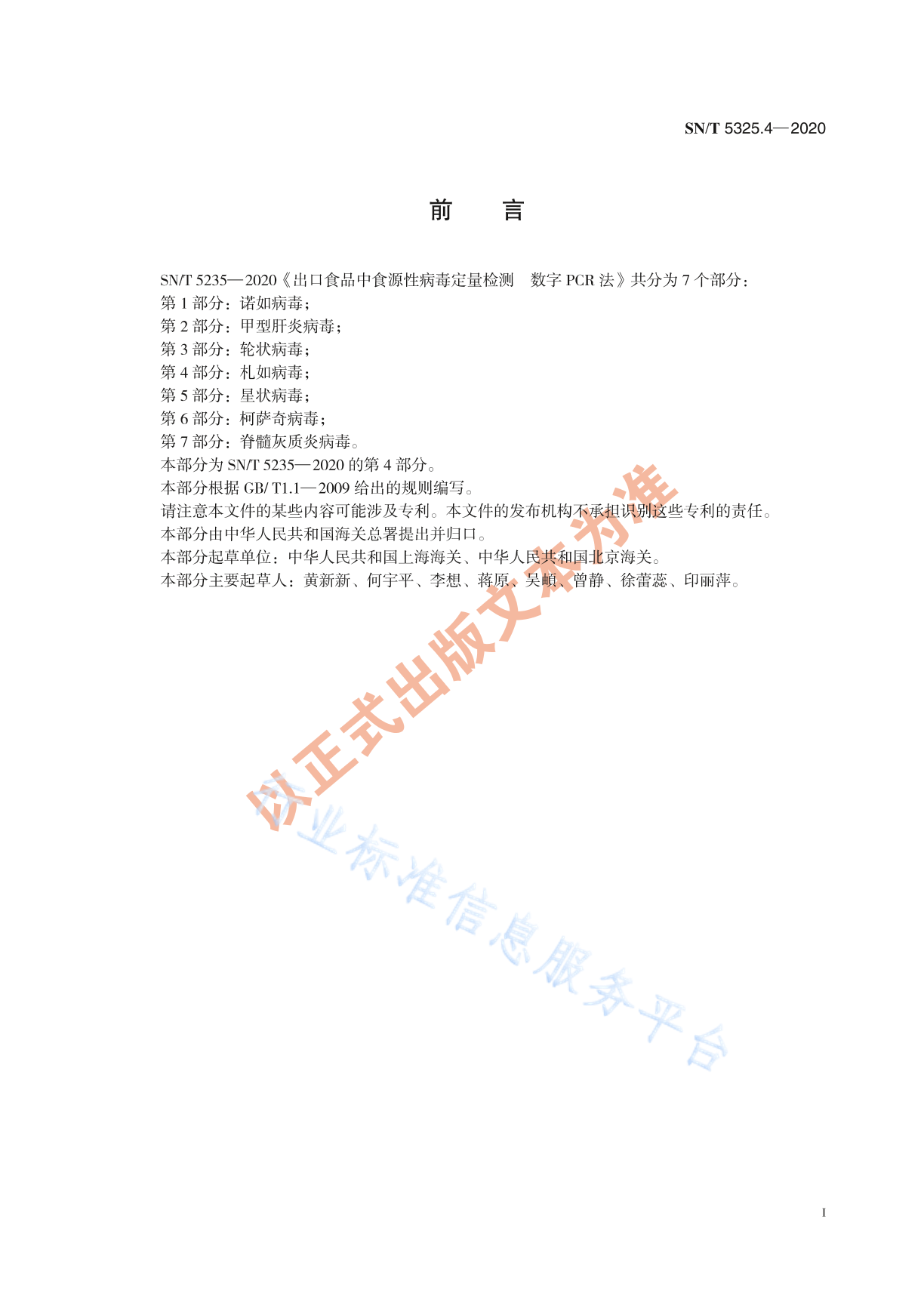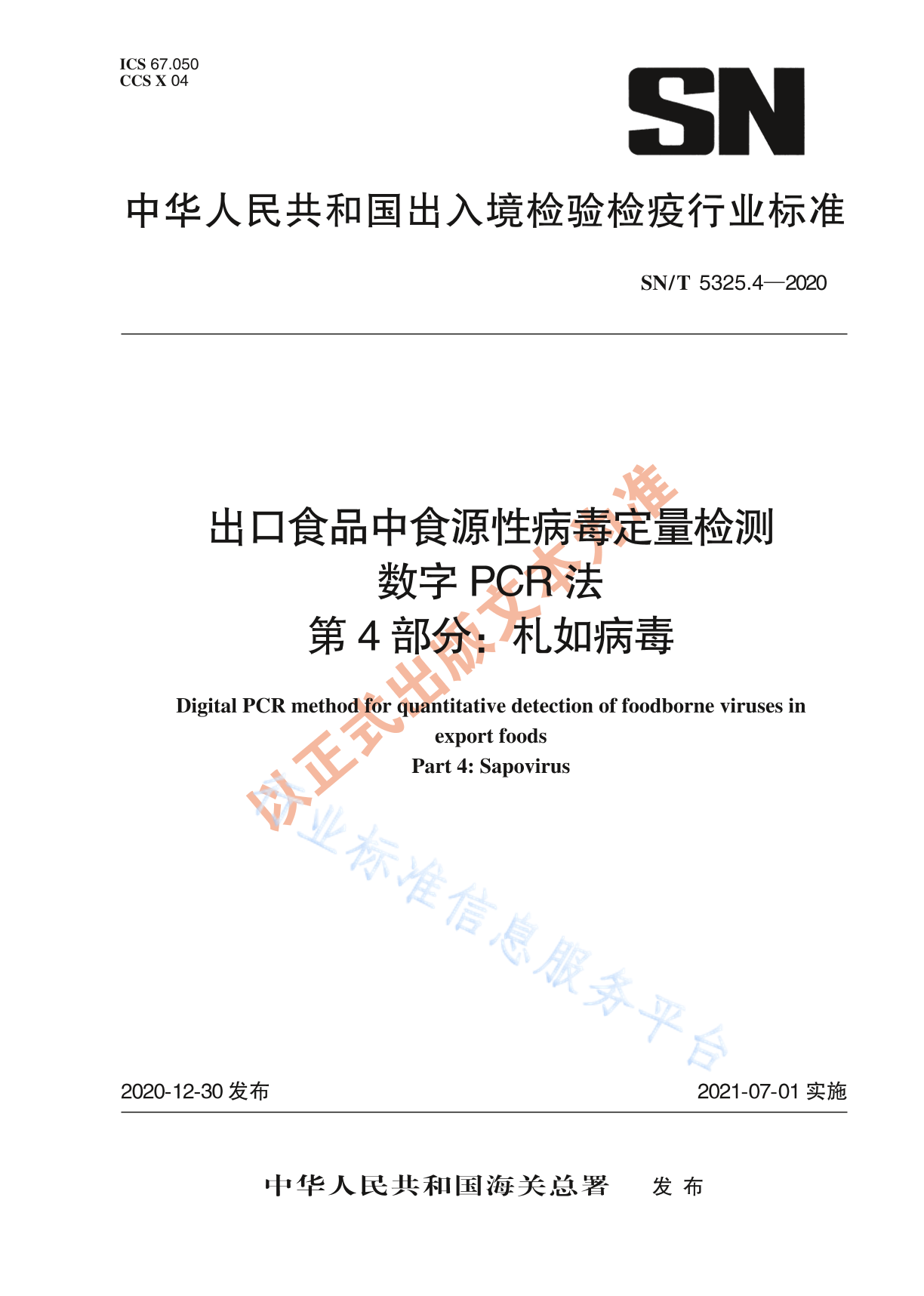 SN/T 5325.4-2020 出口食品中食源性病毒定量检测 数字PCR法 第4部分:札如病毒