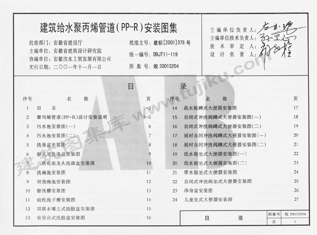 皖2001S204 建筑给水聚丙烯管道(PP-R)安装图集