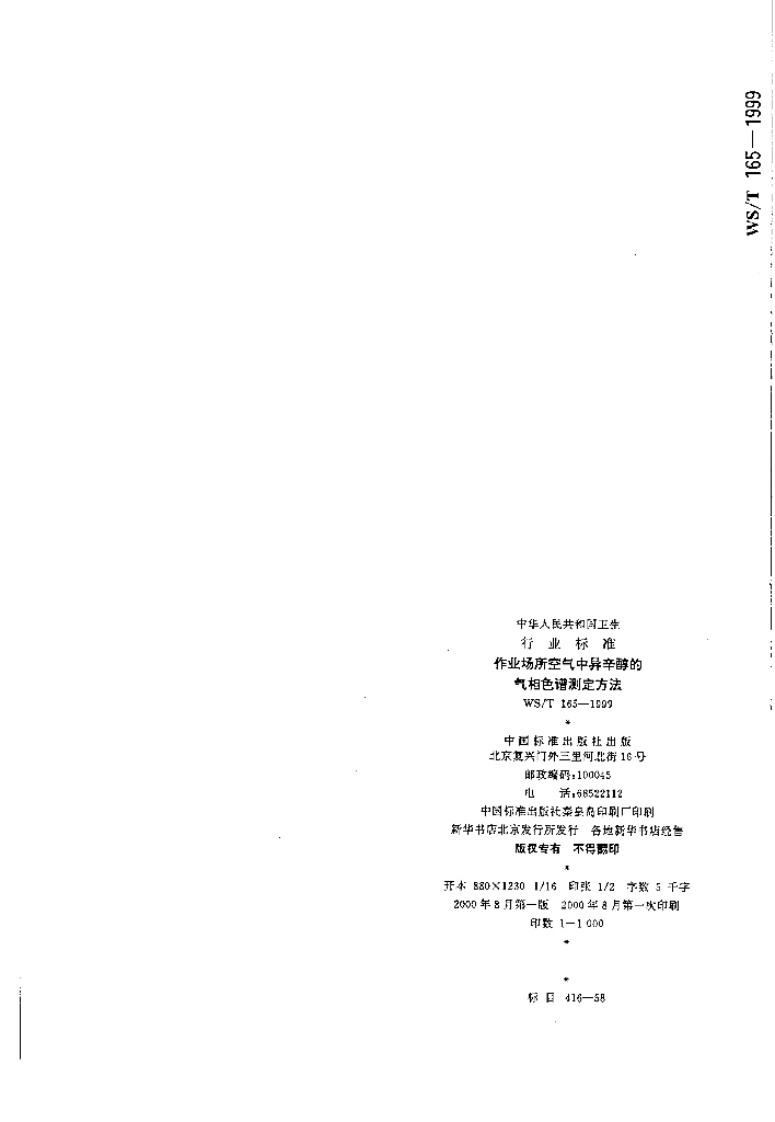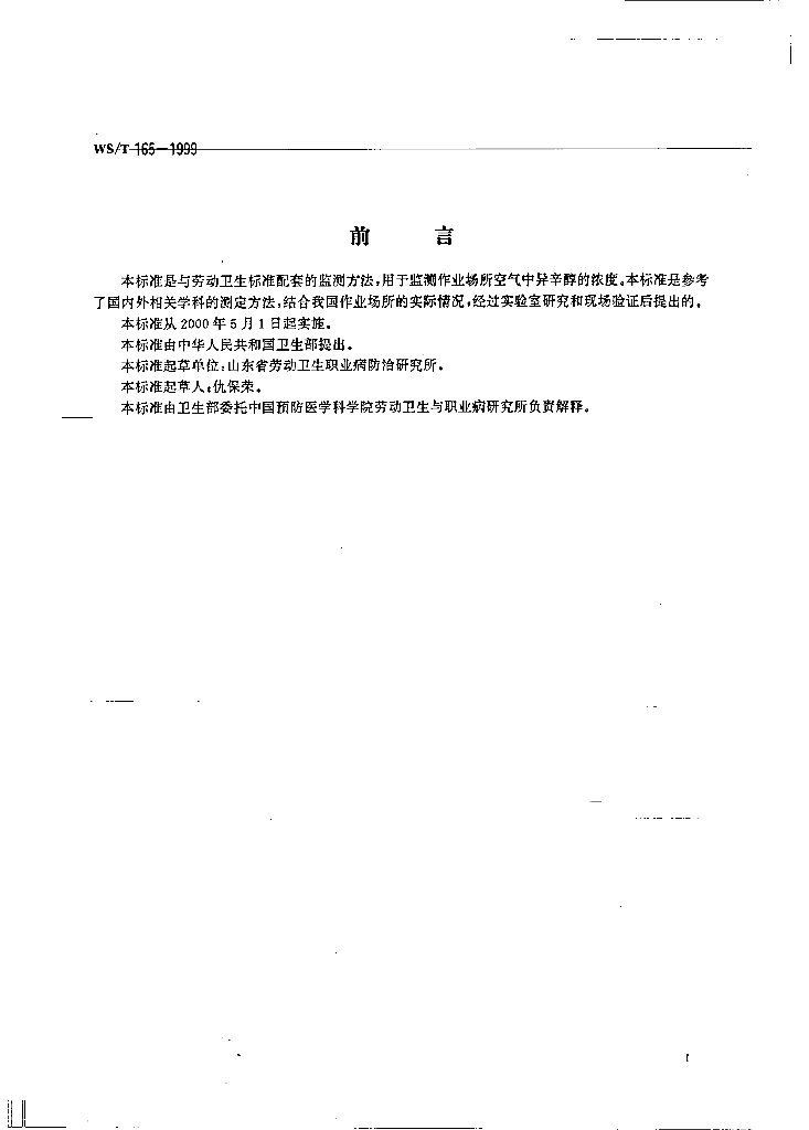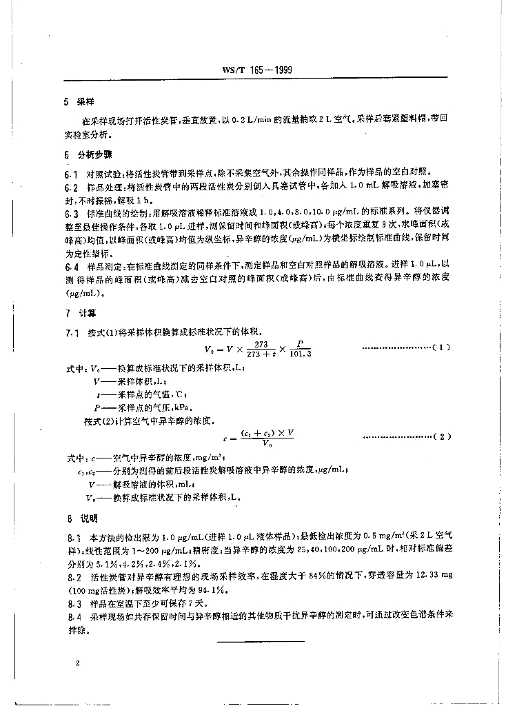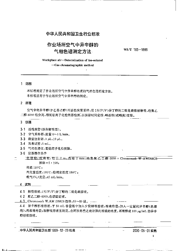 WS/T 165-1999 作业场所空气中异辛醇气相色谱测定方法