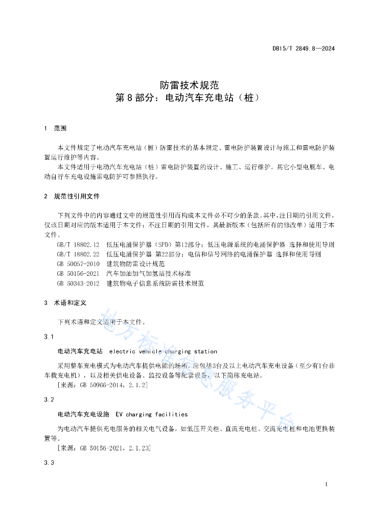 DB15/T 2849.8-2024 防雷技术规范 第8部分:电动汽车充电站(桩)