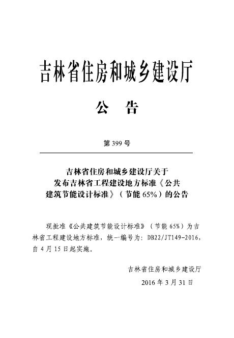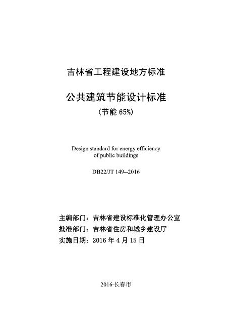 DB22/JT 149-2016 公共建筑节能设计标准(节能65%)