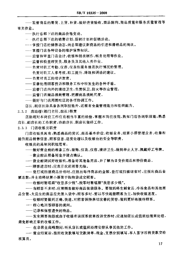 SB/T 10335-2000 连锁超级市场、便利店管理通用要求 门店管理规范