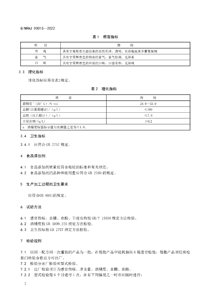 Q/NRHJ 0001S-2022 宁荣辉养生酒